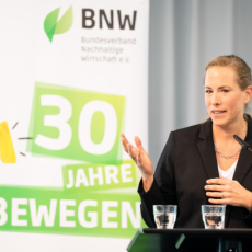 Über 300 Vertreter:innen aus Politik, Wirtschaft, Zivilgesellschaft und Wissenschaft kamen zum 30-jährigen Jubiläum des Bundesverbands Nachhaltige Wirtschaft e.V. zusammen. Während der Jahreskonferenz "Der BNW als Taktgeber für eine zukunftsorientierte Wirtschaft" in der Heinrich Böll-Stiftung und des anschließenden Jubiläumsfests in der Landesvertretung Baden-Württemberg wurde auf die 30-jährige Entwicklung des BNW zurückgeblickt und Pioniergeist, Engagement, Wachstum sowie politische Erfolge gefeiert. Glückwünsche kamen u.a. vom Mittelstandsbeauftragten der Bundesregierung, Michael Kellner, dem baden-württembergischen Ministerpräsident Winfried Kretschmann und der Parlamentarischen Staatssekretärin im Bundesumweltministerium, Dr. Bettina Hoffmann.