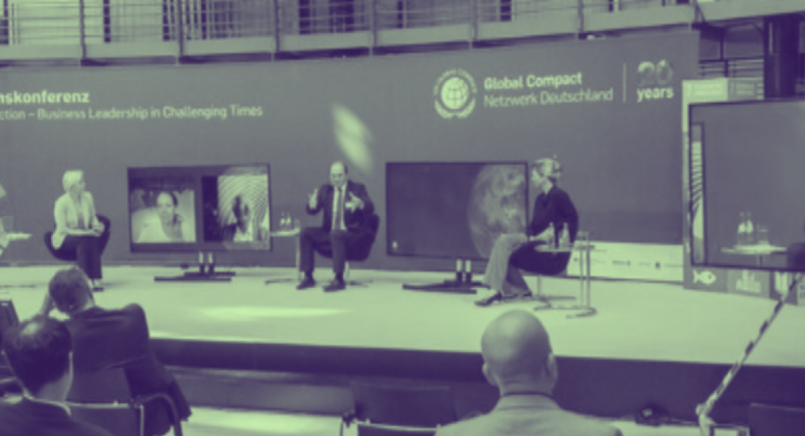 UnternehmensGrün ist seit einigen Jahren Mitglied im Deutschen Global Compact Netzwerk (DGCN). Wir haben uns dazu entschlossen, weil die fortschrittlichen Unternehmen unseres Verbandes auch im DGCN vorwärtstreibende Beiträge leisten können. Bei einer programmatischen Analyse, die das DGCN in Auftrag gegeben hatte, konnten Katharina Reuter und ich kritisch anmerken, dass mittelständische Unternehmen bei den Treffen bisher nicht zu Wort kamen.