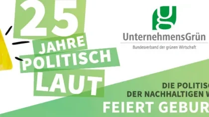Nachhaltige Wirtschaftspolitik Presse 19. June 2017 25 Jahre UnternehmensGrün: Für mehr Nachhaltigkeit in der Wirtschaft Artikel lesen