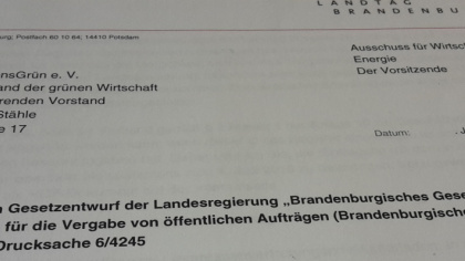 Nachhaltige Wirtschaftspolitik 18. Juli 2016 UnternehmensGrün-Vorstand: Stellungnahme zum brandenburgischen Gesetzentwurf für die Vergabe von öffentlichen Aufträgen Artikel lesen