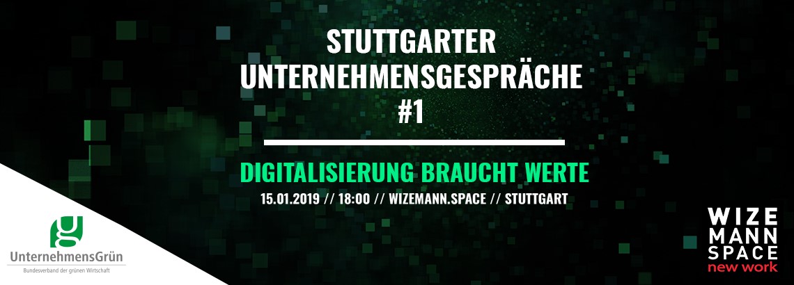 Gemeinsam mit dem WIZEMANN Space startet UnternehmensGrün die Veranstaltungsreihe „Stuttgarter Unternehmensgespräche“. Der Bundesverband der ökologisch orientierten Wirtschaft und das WIZEMANN Space wollen mit dieser Reihe ein Format schaffen, das in der Region Stuttgart den Austausch rund um nachhaltiges Wirtschaften intensiviert. Die Stuttgarter Unternehmensgespräche sind der Ort für engagierte Unternehmer_innen und Gründer_innen, die eine innovative und nachhaltige Wirtschaft voranbringen wollen.